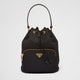 - Sleek. harmonious lines define the silhouette of this mini-bag with a casual attitude. The design combines pragmatic Re-Nylon. the innovative regenerated nylon material. with refined brushed leather details and metal hardware. The accessory. decorated with the enameled metal triangle logo . is completed by an external pocket for a versatile. contemporary touch.